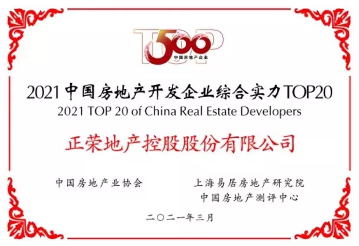 凭借在稳健经营、产品力提升、社会责任等方面的突出表现,荣获“2021中国房地产开发企业综合实力TOP500”,位列第20名,连续多年稳居行业TOP20。