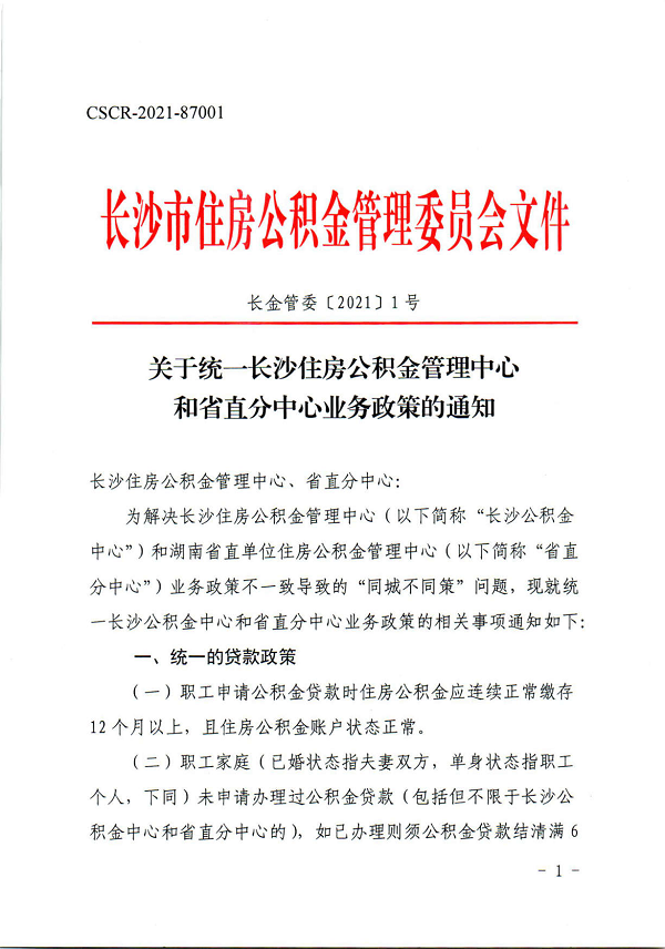 《通知》旨在解决长沙住房公积金管理中心和湖南省直单位住房公积金管理中心业务政策不一致导致的“同城不同策”问题,对住房公积金贷款、提取以及缴存政策内容进行了统一。该《通知》自2021年2月1日之日起施行,长沙住房公积金管理中心铁路分中心参照执行。