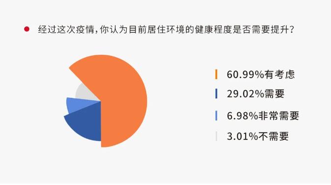 从2020跨入2021,“疫情”仍是家居行业绕不开的关键词。据《健康人居新趋势调查》显示,超9成用户表示现阶段居住环境的健康程度亟需提升,62%的用户希望提升室内空气、水质的洁净卫生;在中装协住宅产业分会的一项调研中,73.3%的被调研者表示将来会增加健康家居类产品。