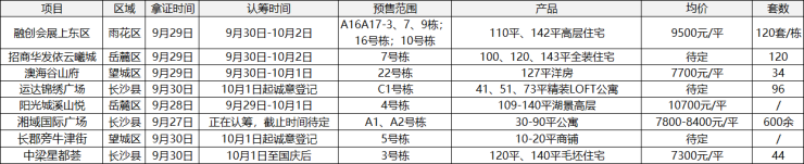 今日长沙6项目认筹 星沙7字头加推毛坯住宅