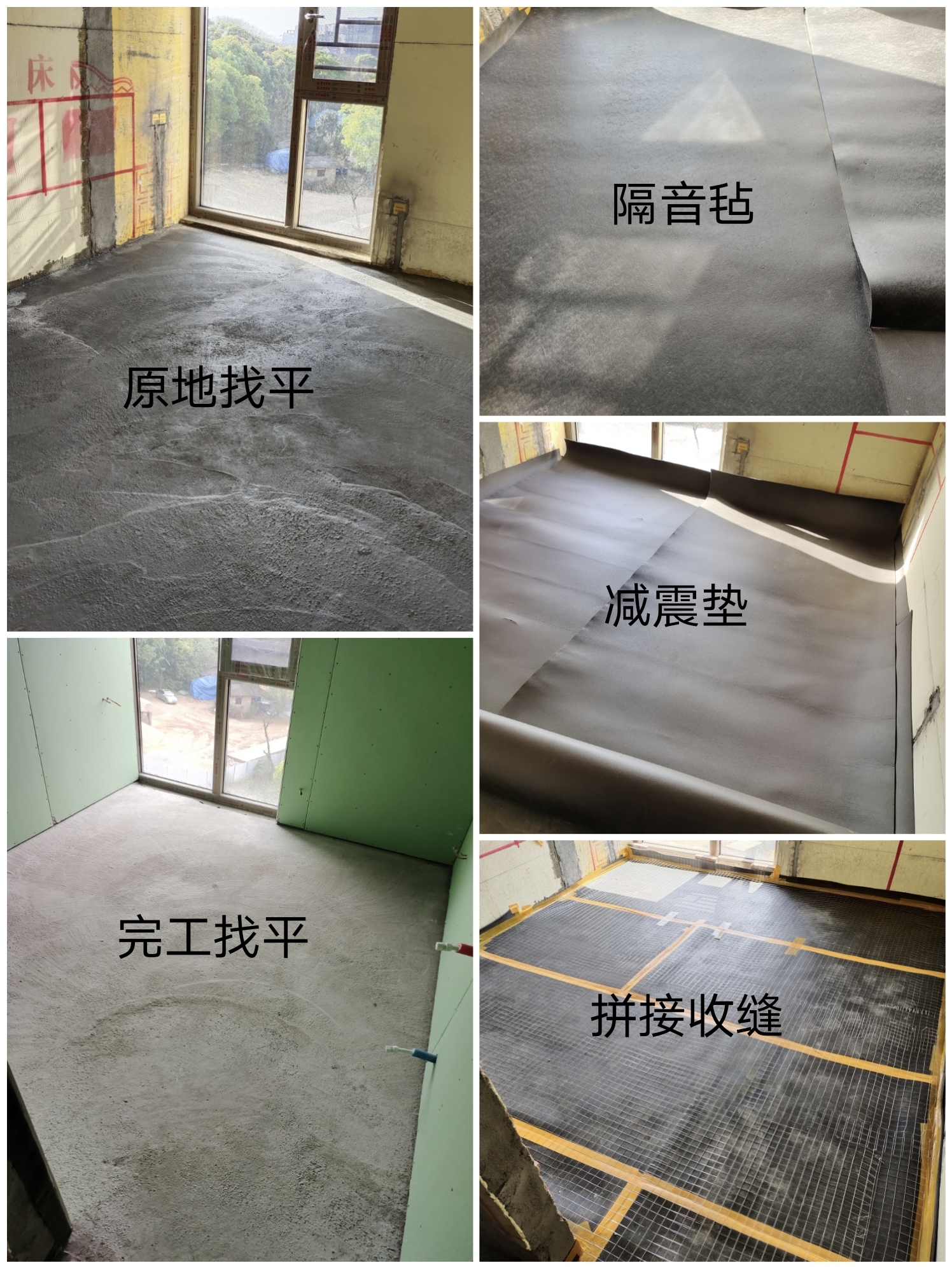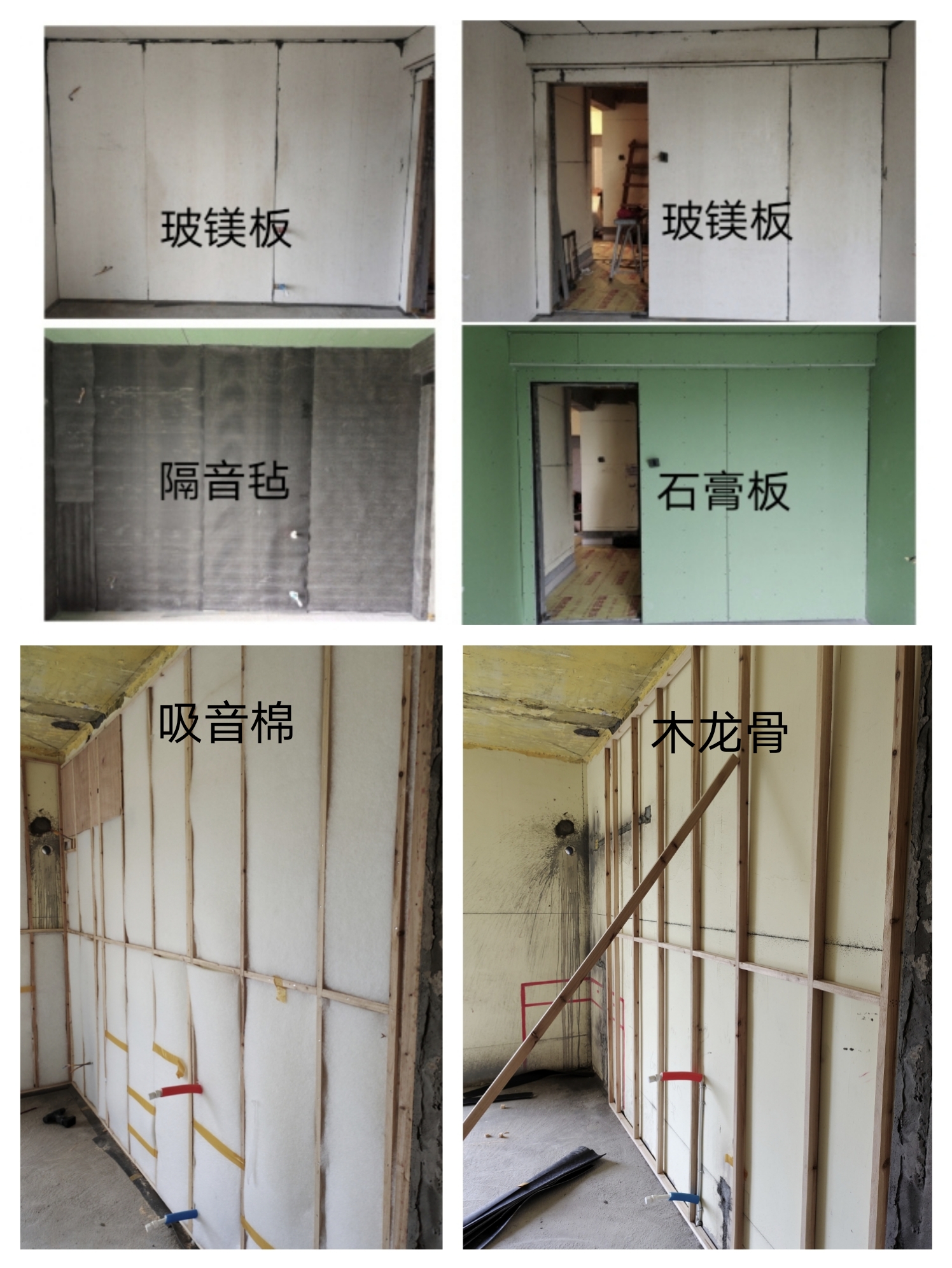 配置:天花减震器、吊顶龙骨、墙用龙骨、吸音棉、隔音毡、防水石膏板、玻镁隔音板、减震垫、防水膜、密封带、填缝石膏。
