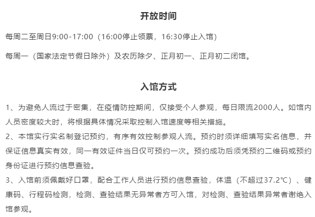 8月5日宣布临时闭馆,2021年8月14日(周六)13:30起恢复有序开放。相关开放时间和入馆方式如下。