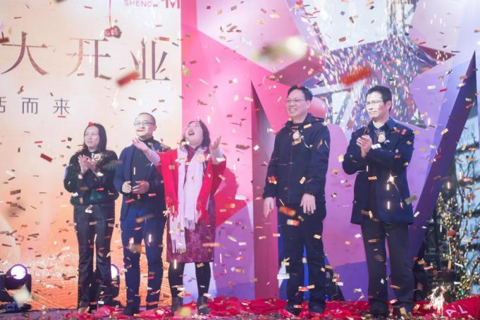 致辞过后,许振勤、陈伟红、潘俊钢、吴洋、吴继红一同揭幕,正式宣告长沙福晟MALL开业。