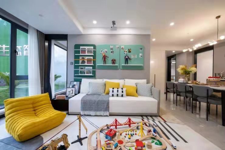 儿童房布置在客厅旁边,整个户型的中心位置,让孩子在呼唤父母的时候,可以随时回应。
