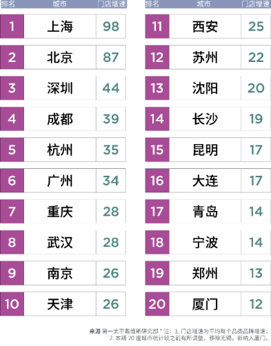 品牌:成熟品牌在核心城市扩张普遍放缓,更具新意的细分市场品牌更待挖掘。