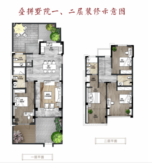 铜官小院建面约173㎡的叠墅产品,实际使用面积达到约280㎡。户型空间灵活多变,给居住者预留了极大的改造余地,更好地契合全龄段居住需求。