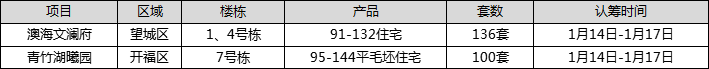 【较新动态】澳海文澜府1、4号栋已获取预售证,本次推售房源共计136套,为91平三房-132平四房,均价6500元/平,于1月14日-1月17日认筹,预计本周开盘。
