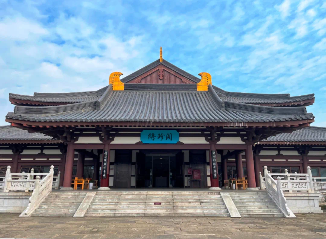 绣珍阁在铜官窑古镇景区里,门口的一幅对联“巧手针描千幅画,精心线织万年春”,生动描绘了300余件中国刺绣艺术精品在此静静绽放的情景。