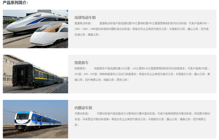中国中车集团有限公司是经国务院批准、国资委监管的国有独资企业,是我国轨道交通装备领域唯一的产业化集团,在全球轨道交通装备制造商中规模最大、品种最全、技术最先进。同时也是清洁能源装备领域的骨干企业。