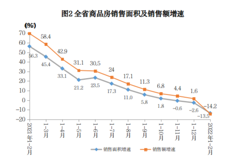 1-2月,湖南全省房地产开发企业房屋施工面积33348.22万平方米,增长1.0%。其中,住宅施工面积24847.34万平方米,增长2.1%。房屋新开工面积651.33万平方米,下降20.3%。其中,住宅新开工面积503.73万平方米,下降25.1%。房屋竣工面积809.81万平方米,下降12.8%。其中,住宅竣工面积631.56万平方米,下降9.9%。