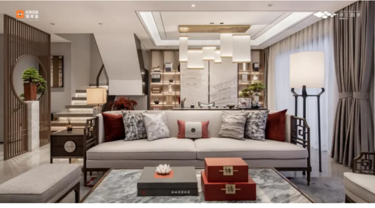 首层约5.9米的挑高客厅,约7.4米的朗阔面宽,大空间和大尺度的课堂在宴请亲朋、聚会好友时相当“有排面”。