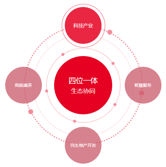 为呼应以用户为核心的“美好你的生活”理念,金科从原有的“地产+服务”双核驱动战略,进一步升级到“四位一体、生态协同”战略,即坚持“精耕地产主业,做强智慧服务,做优科技产业,做实商旅康养,并在此基础上进一步整合产业链生态圈”,组成多元化协通发展路径。