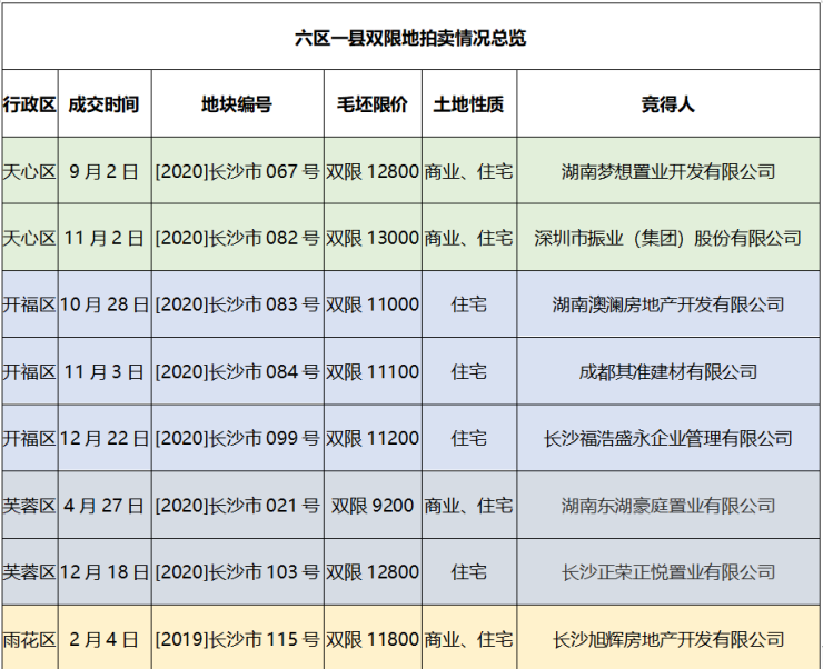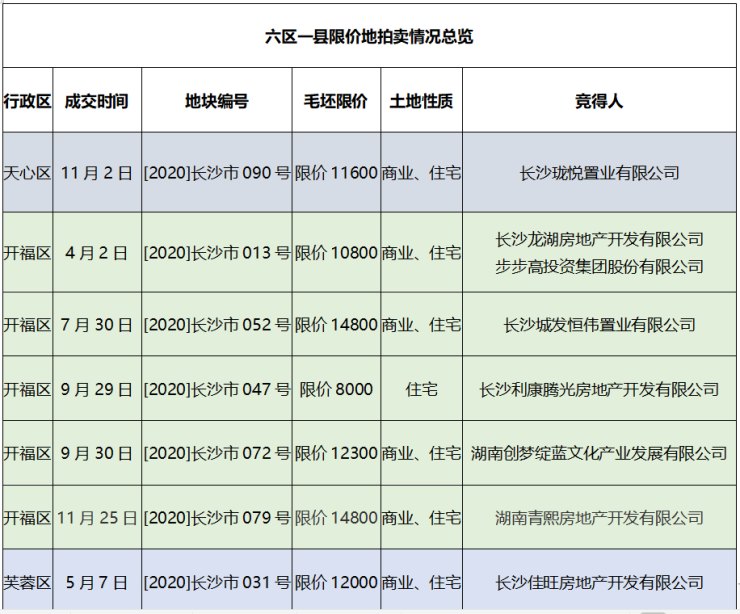 2020年,长沙六区一县共成交23宗双限地,较上年减少了52%;共成交31宗限价地,较上年增长了121%。六区一县的限价地天花板都在2020年被刷新。