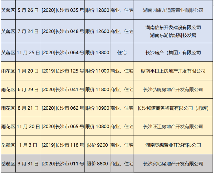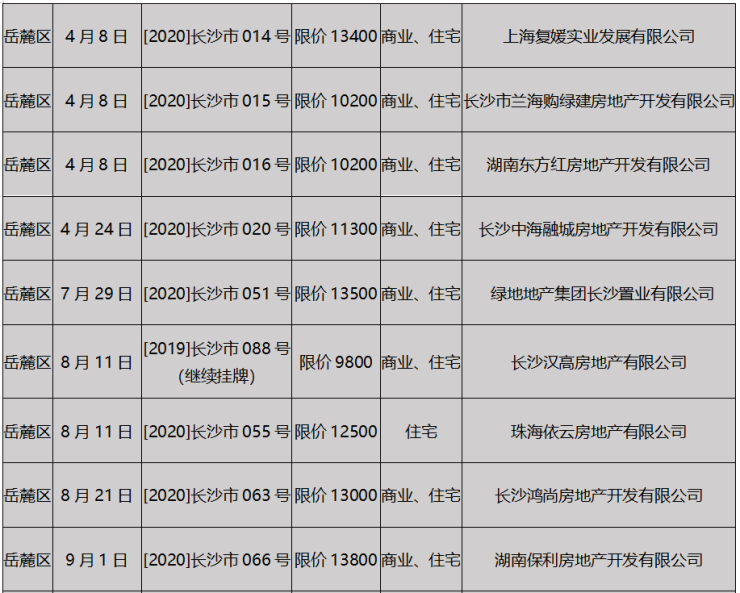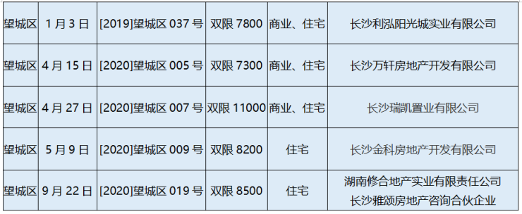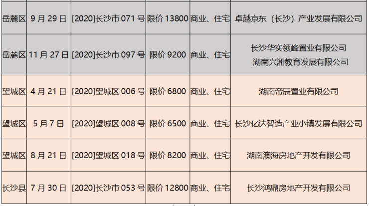 住宅限价较低地块是位于望城区的[2020]望城区008号地块,毛坯限价为6500元/㎡,其次为[2020]望城区006号地,毛坯限价为6800元/㎡。