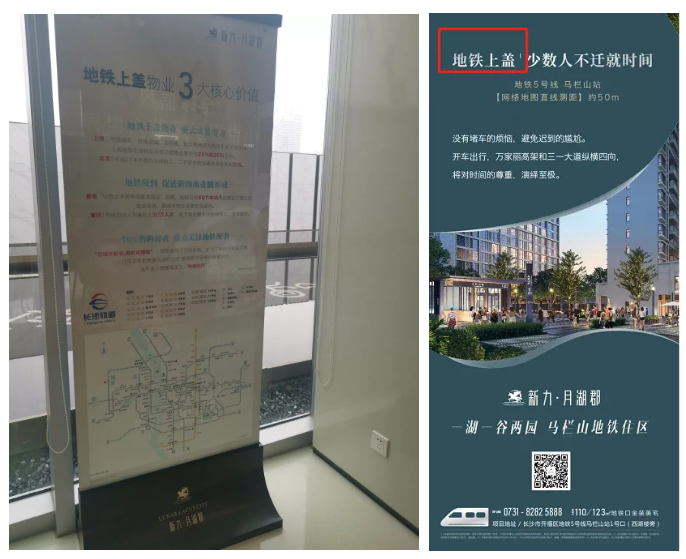 实地探访后发现,新力·月湖郡近邻地铁5号线马栏山站1号出入口,但并非项目所宣称的地铁上盖项目。未来小区主出入口距离地铁口约50米。
