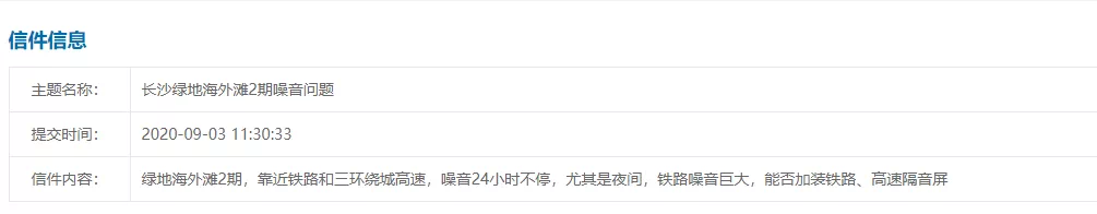 毕竟,临近城市主干道、环线、高架、铁路,对居民来说,噪音污染是无形的伤害。万象府台、绿地海外滩、梅溪湖南岸等楼盘也多次因噪音问题引发关注。市长互动信箱中,关于噪音扰民的投诉更是层出不穷。