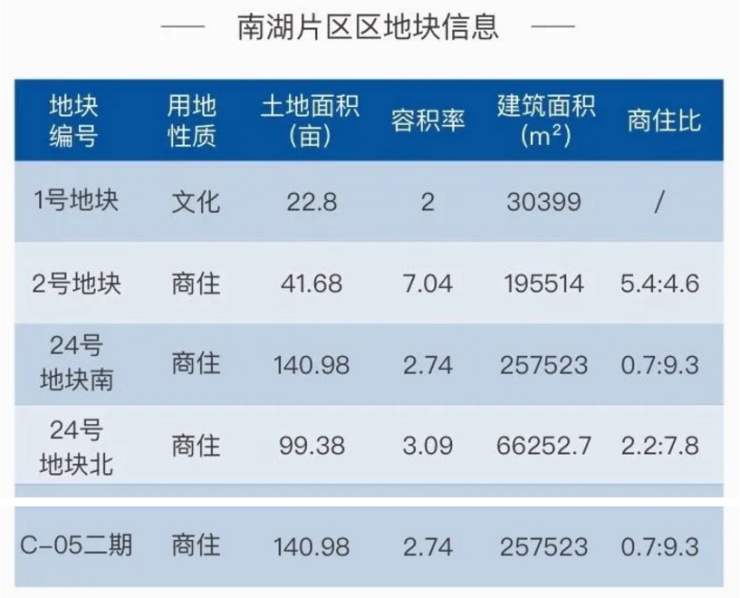 南湖新城片区共有5宗地计划出让,其中包含,1宗文化用地、4宗商住用地,出让面积约446亩。