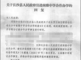 长沙市教育局批复长沙县人民政府关于在自贸区临空管委会引进长沙市南雅中学合作办学事宜